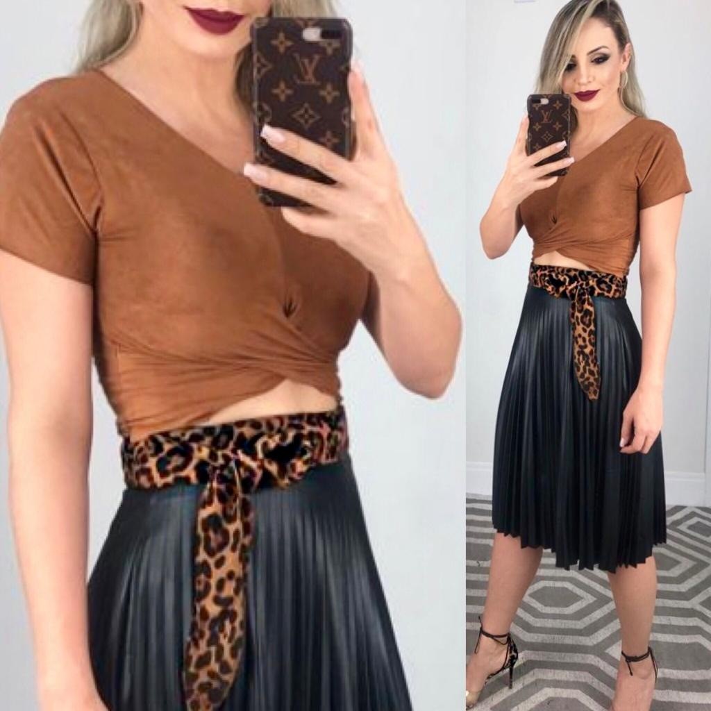 Cropped Tran ado Blusa Feminina Suede Viscolycra Top Moda Blogueira