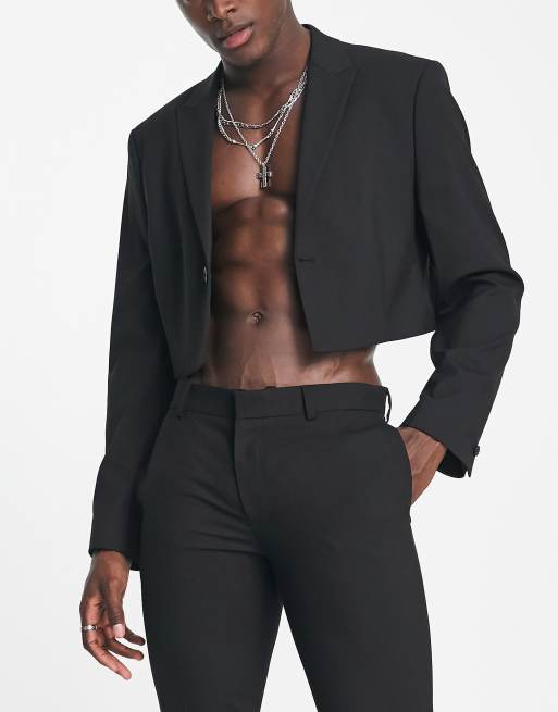 Cropped suit clearance, Pinstripe Crop Blazer Trouser Suit Set clearance