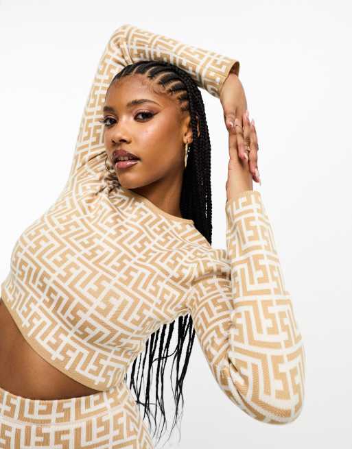 Simmi cropped sweater and maxi skirt set in beige geo print ASOS