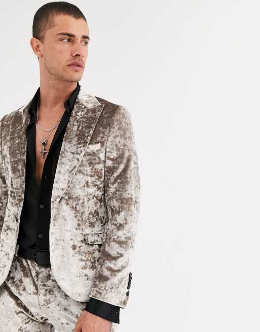 Twisted Tailor super skinny crushed velvet suit jacket in champagne