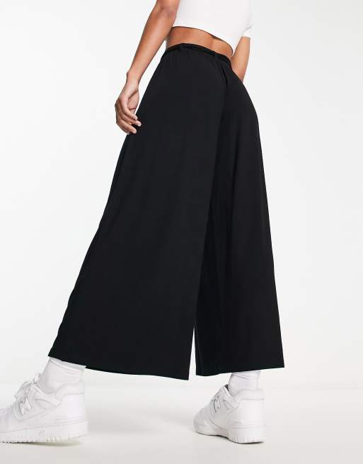 ASOS DESIGN tie belt wide leg trouser culottes in black