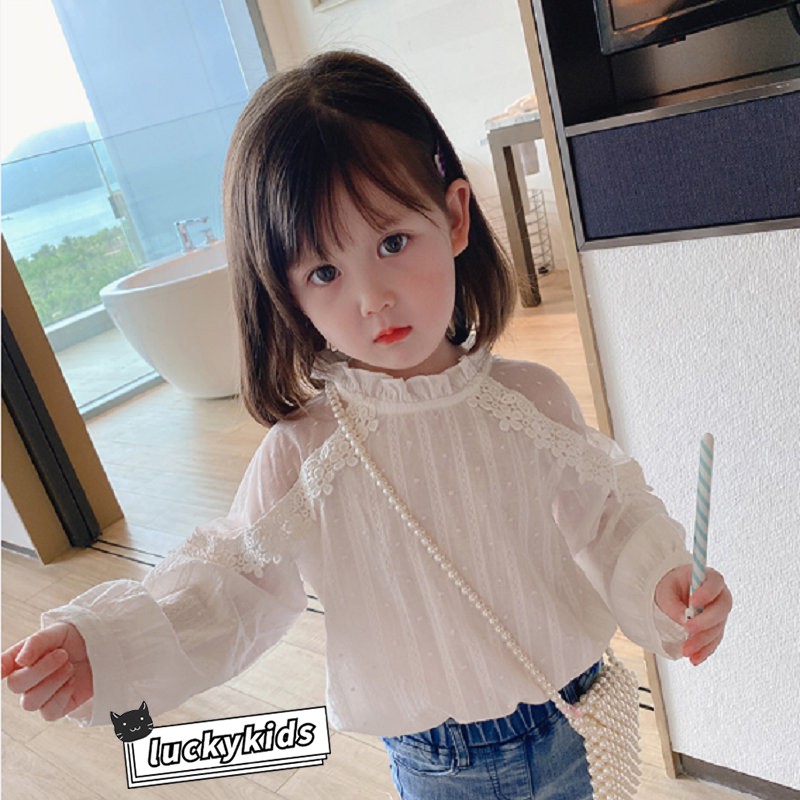 Sweet Baby Girls Lace Flower Embroidery Long Sleeve Tops Cute Kids
