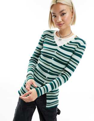 Daisy Street rib knitted cardigan in green stripe
