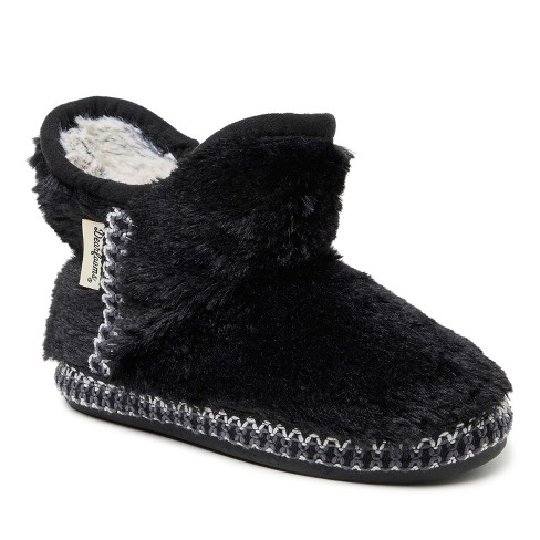 Dearfoams Kid s Girls Charlotte Pile Bootie Slippers Black Size