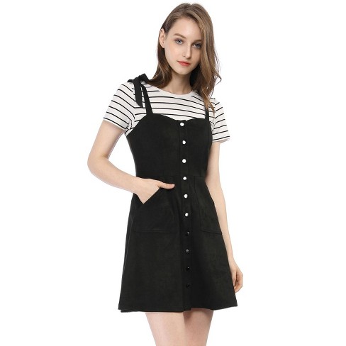 Allegra K Women s Strap Button Down Faux Suede A line Mini Overall