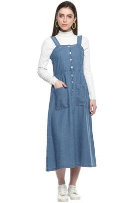 Buy LIFE Womens Strappy Neck Mild Wash Denim Pinafore Dress