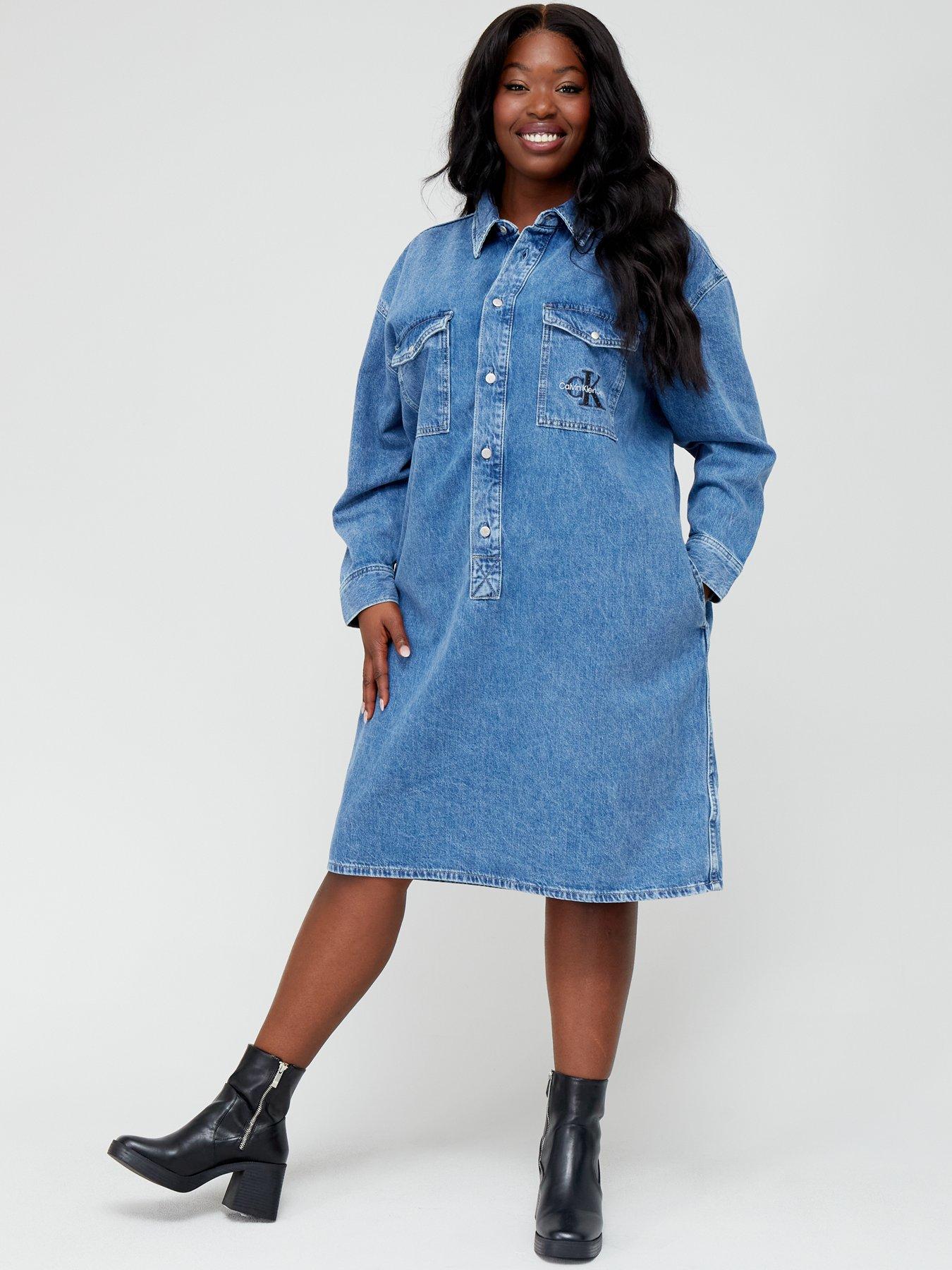 Calvin Klein Jeans Curve Utility Pop Over Denim Shirt Dress Blue