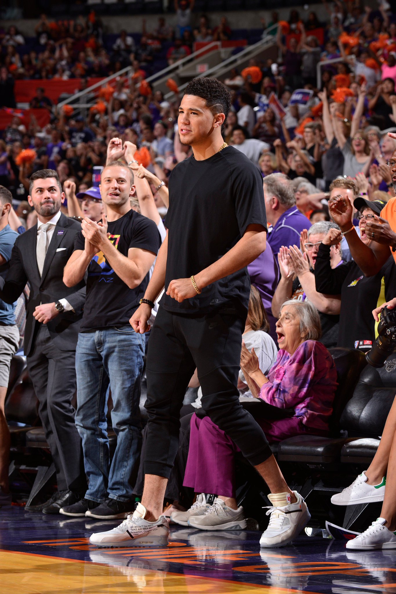Devin Booker wearing Air Max 95 inspired Nike Book 1s last night