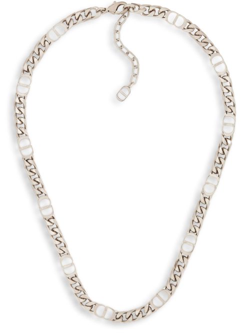 Dior Italic Chain Link Necklace Silver Finish Brass and White