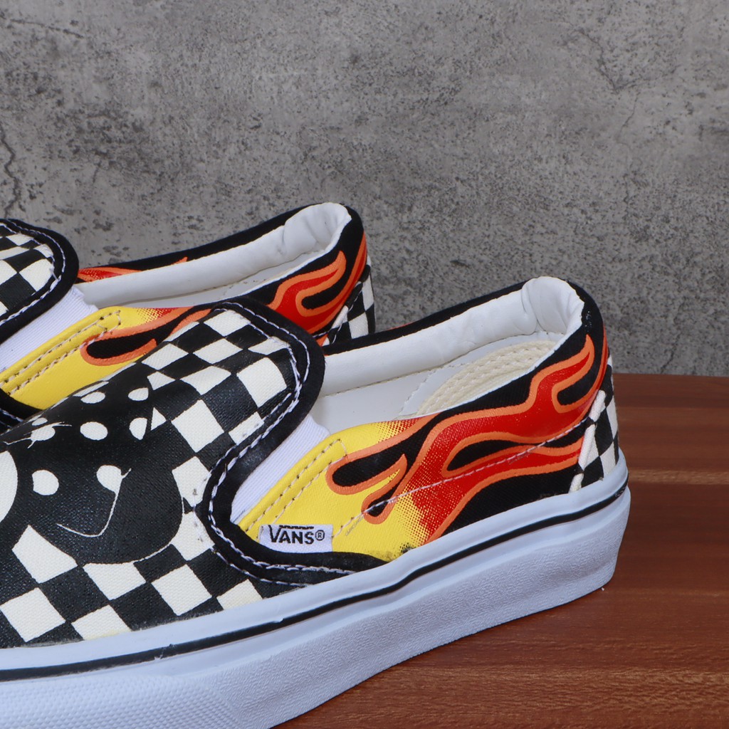 Vans Checkered Disney Mickey Minnie Mouse Slip On Shoes Flames