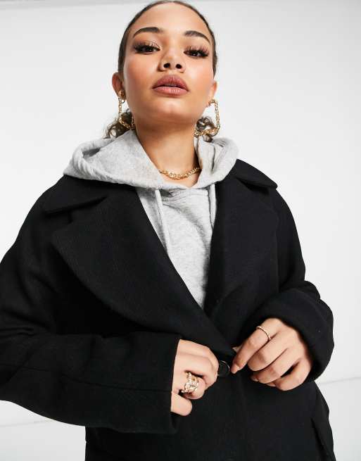 DKNY BLACK Women s Plus Size Double Breasted Wool Blend Trench