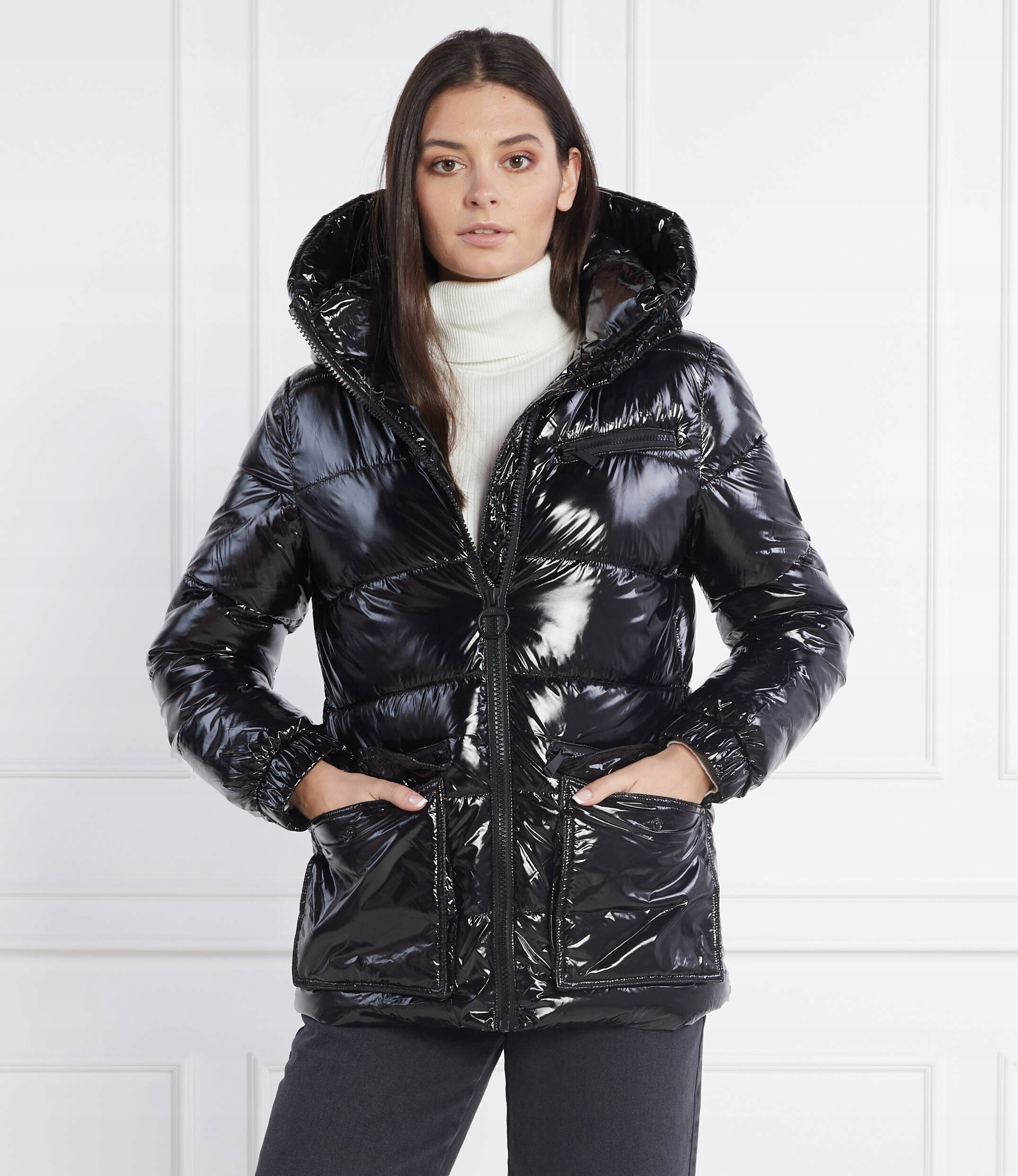 DKNY Sport Damska Ma a Czarna Logo Puchowa Kurtka z kapturem Odporna na warunki