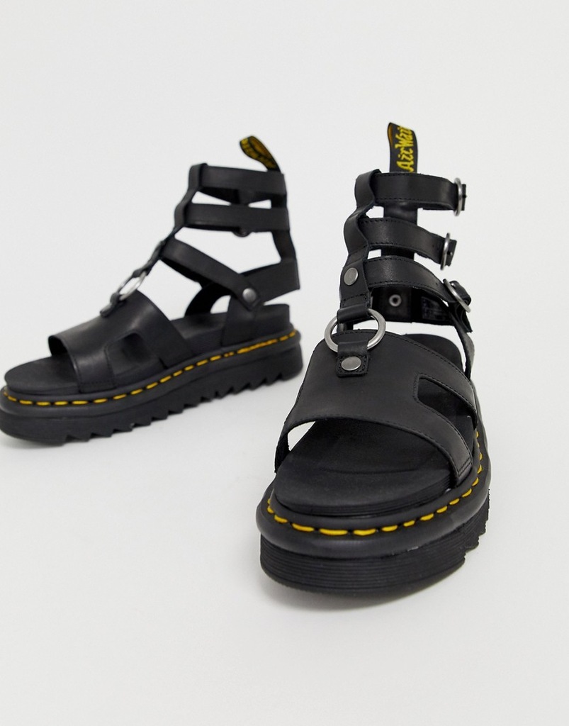 Dr Martens Adaira Gladiator Chunky Buckle Up Sandals Black Leather