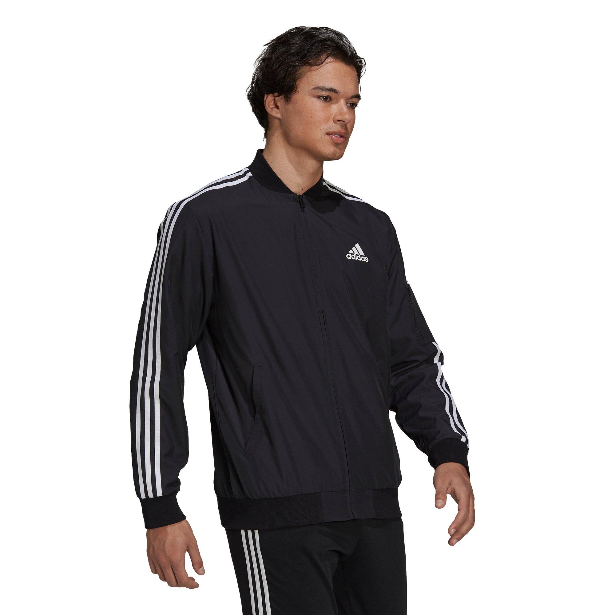 adidas Men s Essentials Woven 3 Stripes Black White Jacket