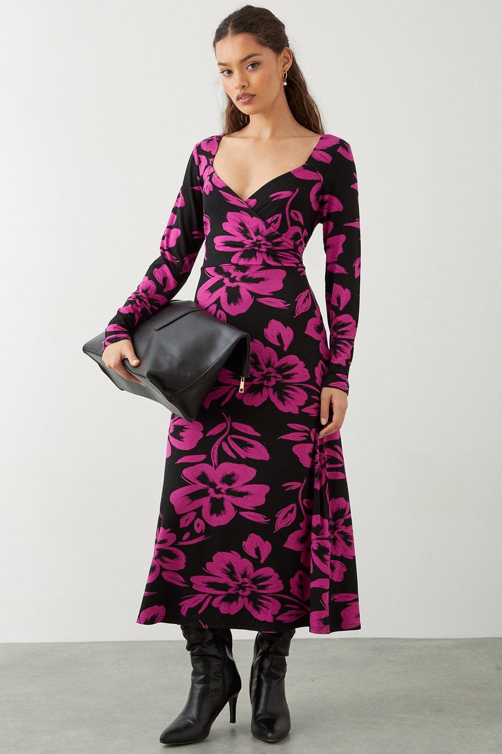 Dorothy perkins floral midi dress clearance, Dresses Petite Pink Floral Print Wrap Midi Dress Dorothy Perkins clearance