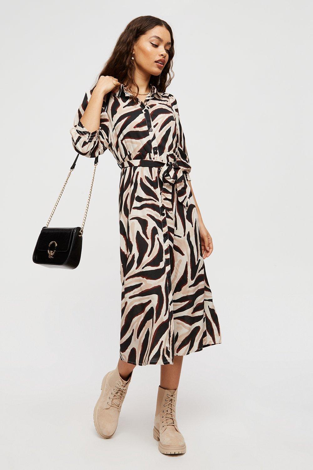 Dresses Petite Large Tiger Midi Shirt Dress Dorothy Perkins