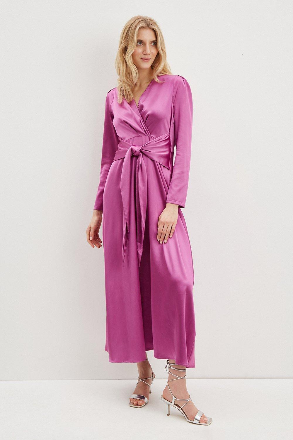 Dresses Purple Knot Front Satin Midi Dress Dorothy Perkins