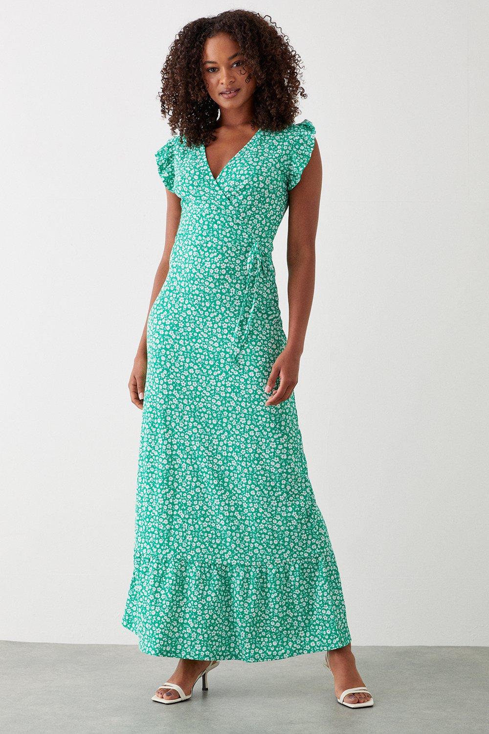 Dresses Tall Ditsy Frill Sleeve Tiered Wrap Maxi Dress Dorothy