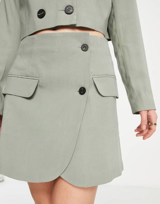 Topshop Tailored co ord button wrap mini skirt in sage ASOS