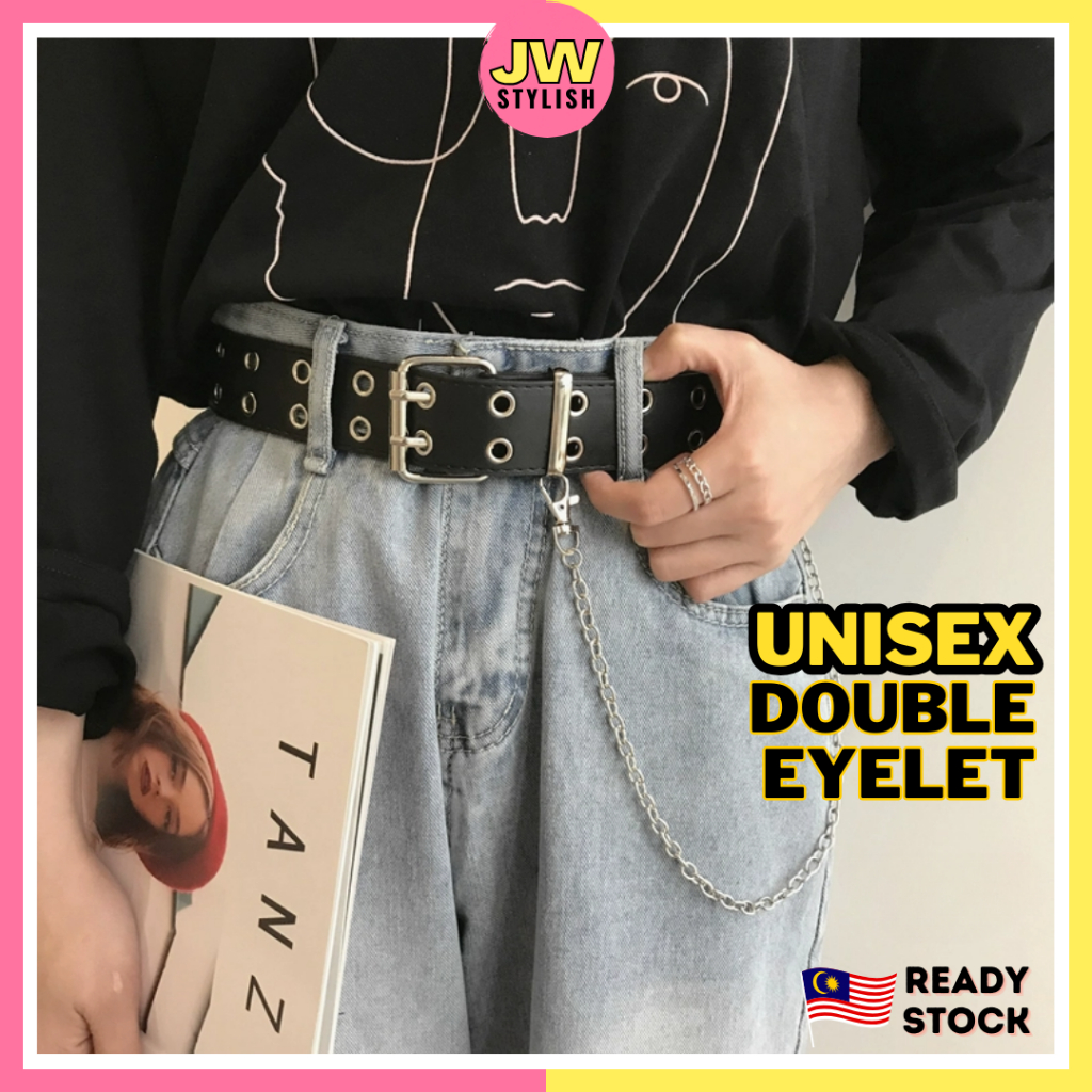 JW Stylish Unisex Double Eyelet Belt with Chain Hip Hop Belt Tali