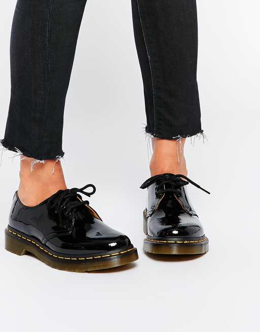 Dr Martens 1461 classic flat shoes in black patent ASOS