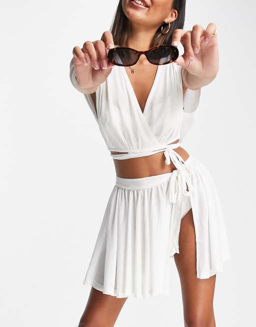ASOS DESIGN drape wrap beach co ord skirt in white ASOS