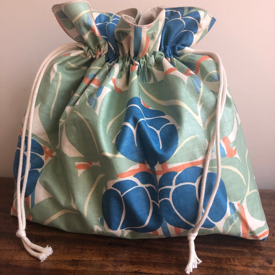 Drawstring sponge bag clearance, Drawstring wash bag in vintage fabric Folksy clearance