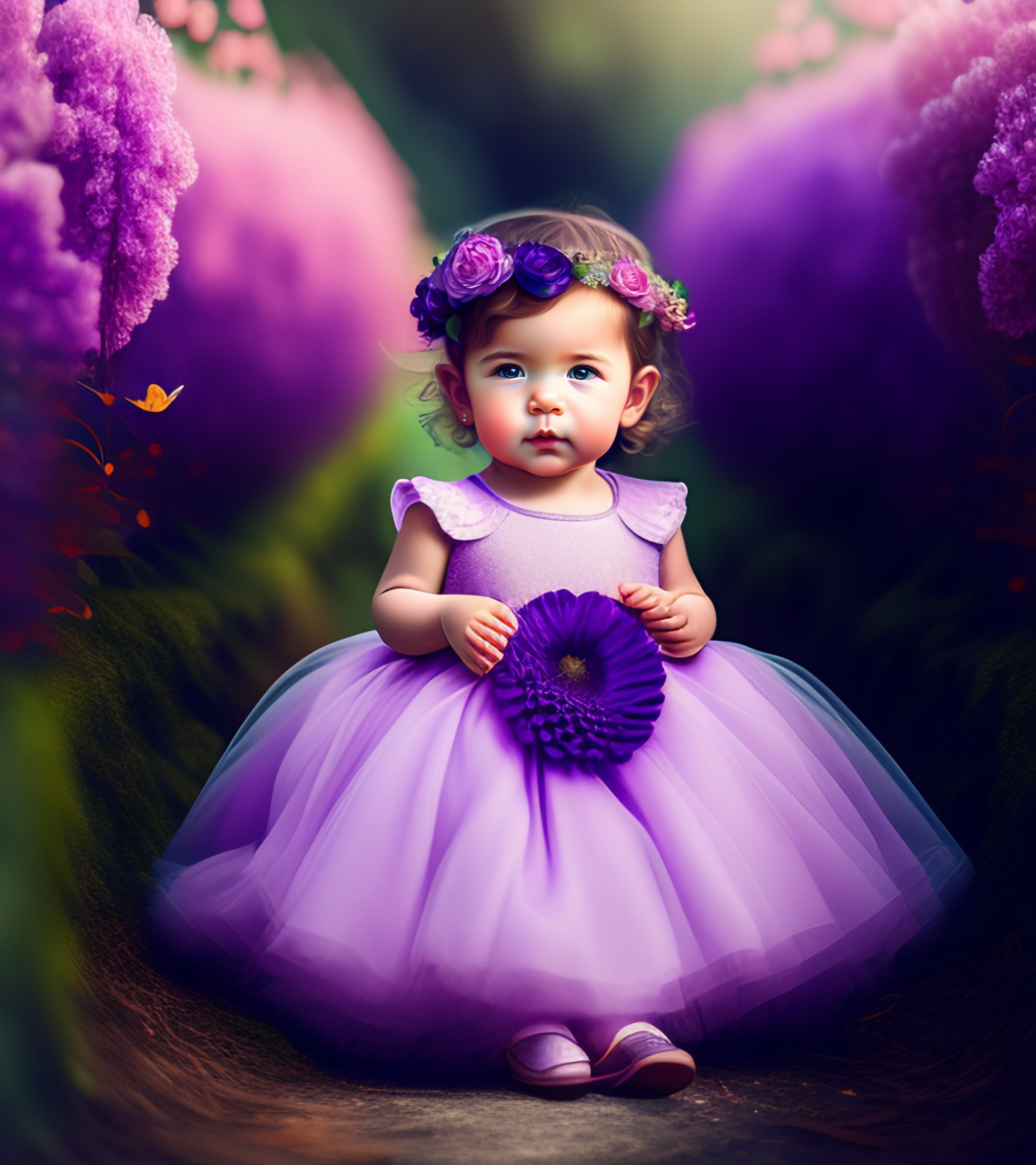 Lexica Beautiful baby cute girl wearing a purple dress holding a