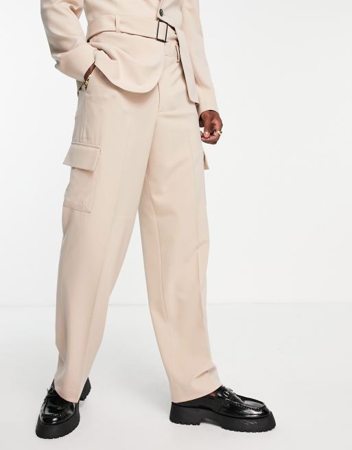 ASOS DESIGN wide leg suit pants with cargo pockets in stone ASOS