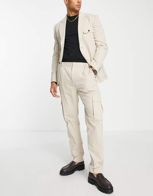 Topman utility smart cargo suit pants in ecru ASOS