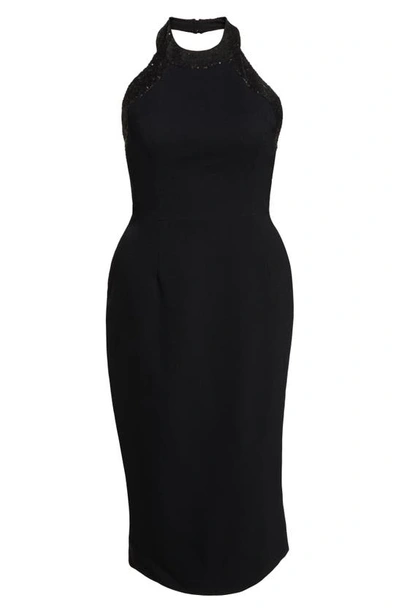 DRESS THE POPULATION CLEO TONAL SEQUIN PANEL HALTER BLACK MIDI