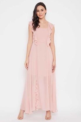 Buy MADAME Dusty Pink Solid Square Neck Polyester Womens Casual