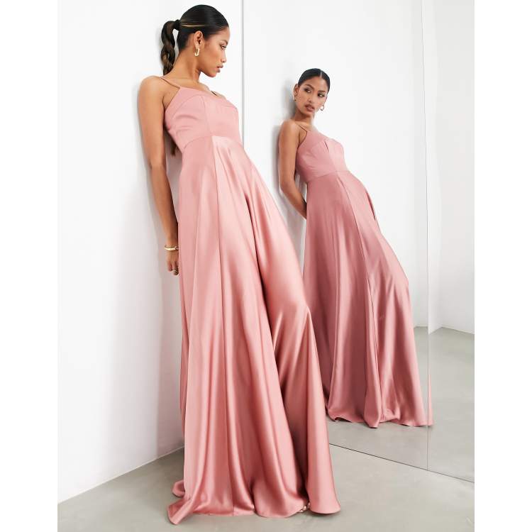 Dusty rose dress asos clearance, ASOS DESIGN Bridesmaid satin cami maxi dress with drape detail in clearance