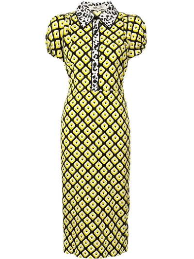 Sz 00 DVF Diane von Furstenberg Yellow Sheath ELLY Diamond Square Midi Dress XXS