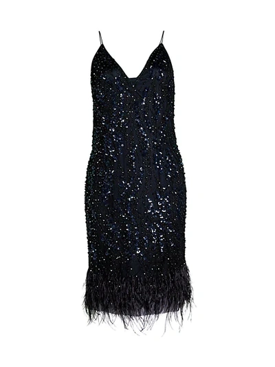 Elie tahari feather dress clearance, Porsha Beaded Feather trim Slip Dress In Stargazer clearance