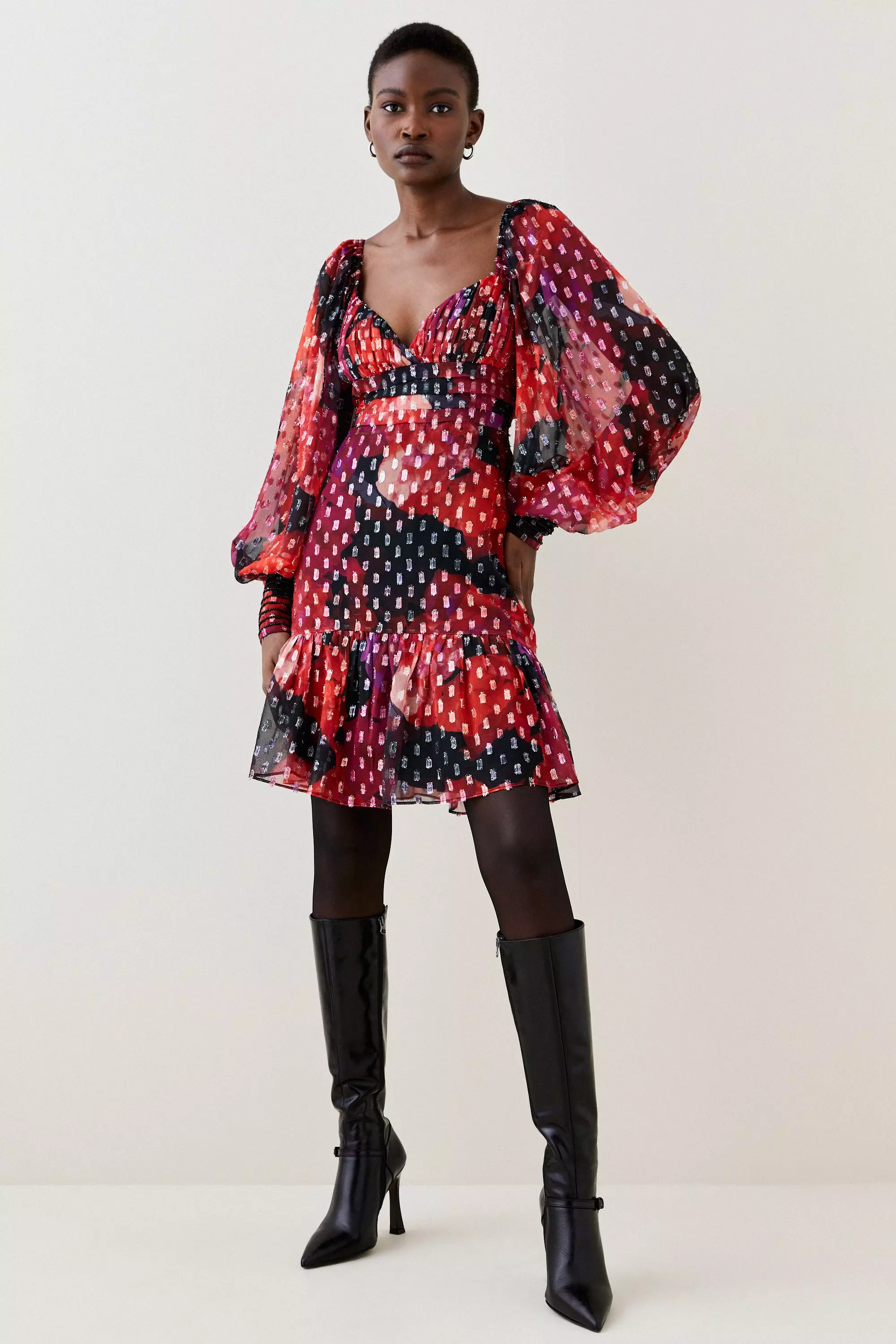 Floral Metallic Beaded Cuff Woven Mini Dress Karen Millen