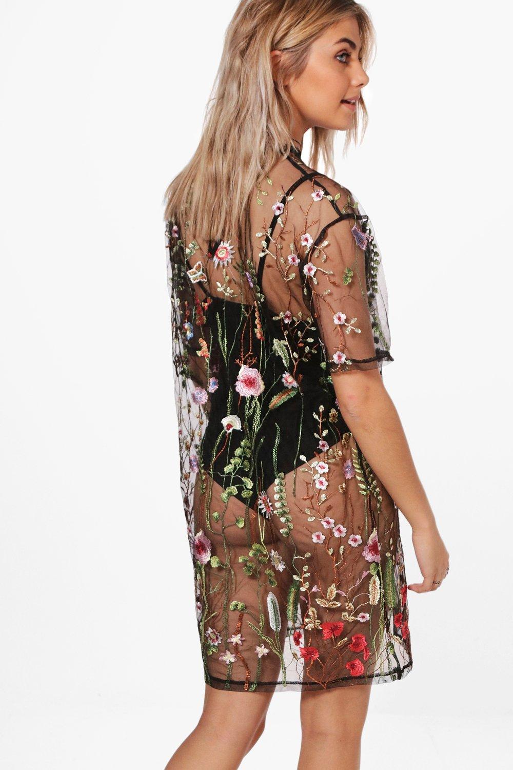Alexa Floral Embroidered Mesh T Shirt Dress
