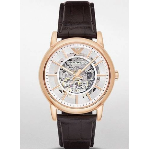 Emporio armani ar1983 clearance, Emporio Armani Meccanico Silver Skeleton Dial Brown Leather Strap clearance