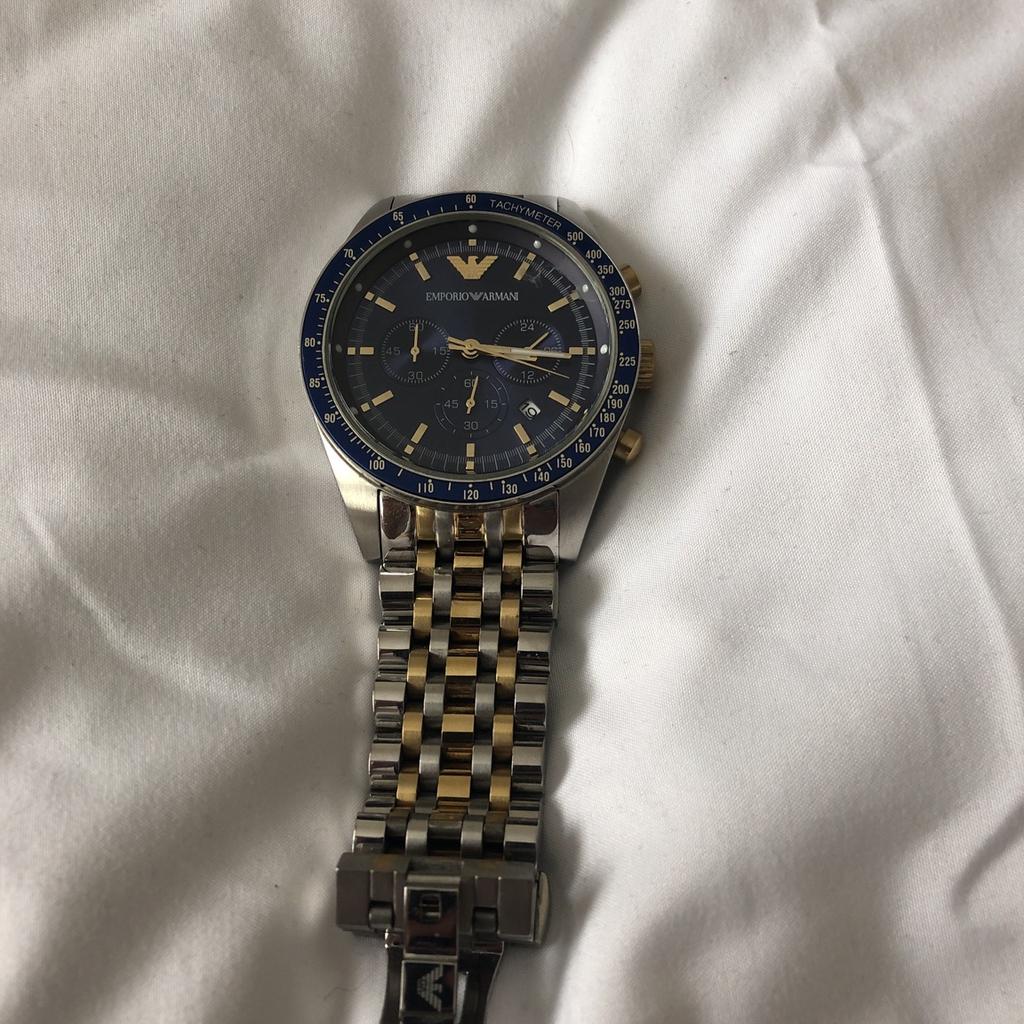 NEW EMPORIO ARMANI MENS WATCH AR6088 TWO TONE SILVER GOLD BLUE