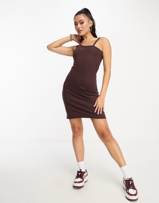 Everyday bodycon dress clearance, Nike Everyday Modern aysmmetric dress in earth brown clearance
