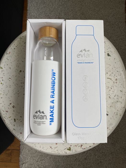 White Evian Virgil Abloh SOMA Make A Rainbow Refillable Glass Water Bottle