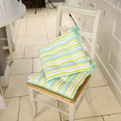 Set of 4 Green and Yellow Outdoor Garden Chair Seat Pad Cushions