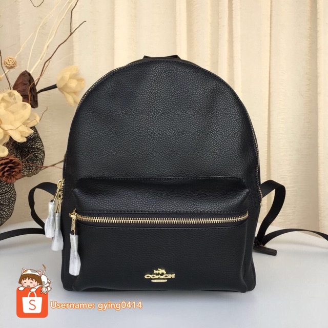 Coach Medium Charlie Pebble Leather Black Backpack F30550 Women