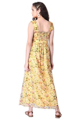 Buy FABALLEY Yellow Printed Georgette Strappy Neck Womens Regular
