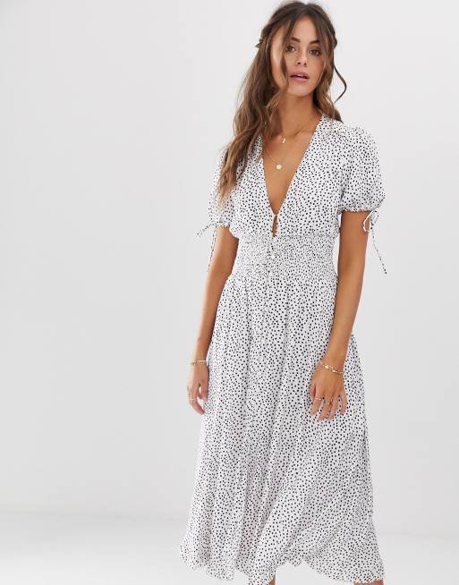 Faithfull the brand nina midi dress clearance, Gerard Darel Joss Ruffle Hem Wrap Dress Beige Multi at John Lewis clearance