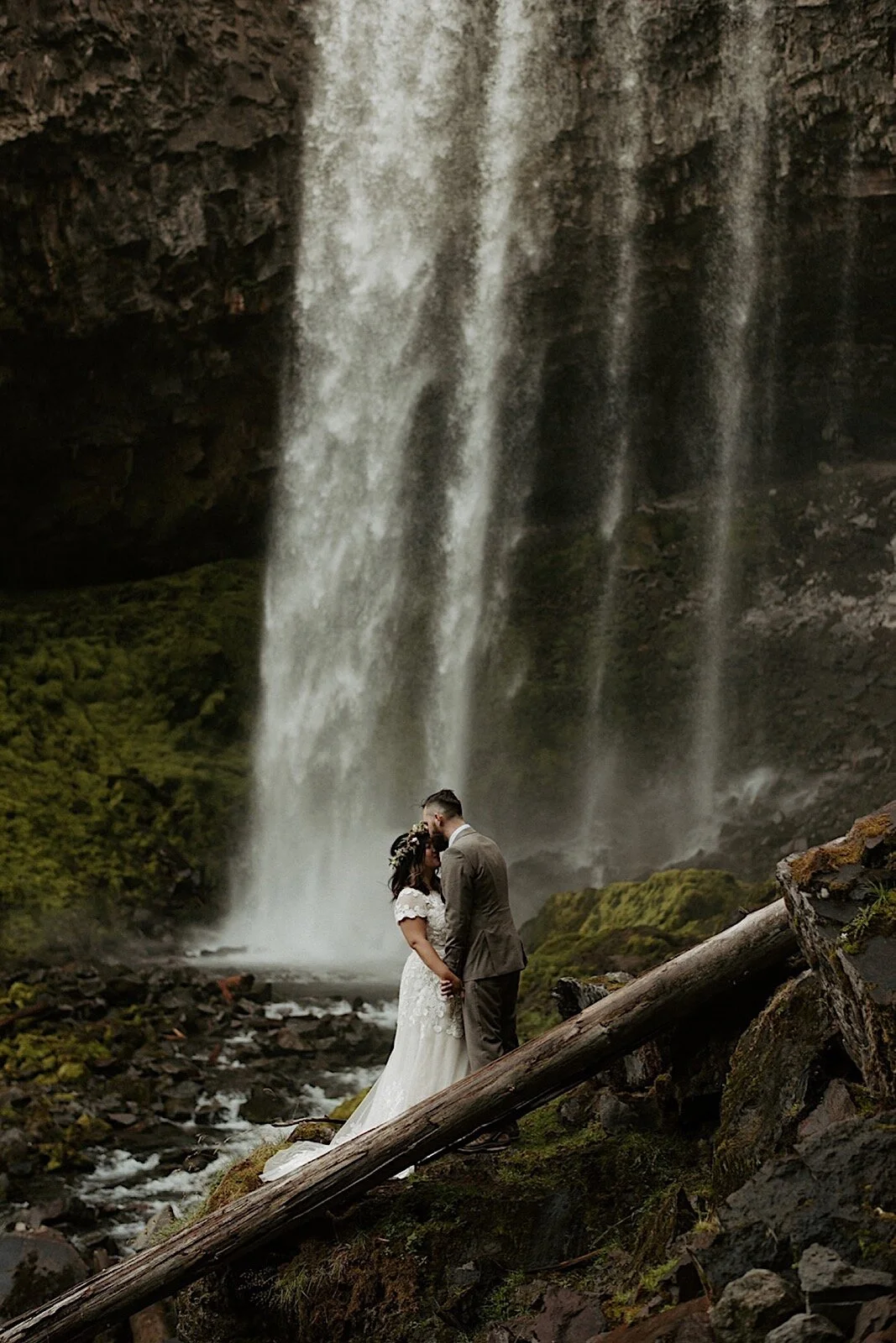 Moody and Dramatic Pacific Northwest Waterfall Elopement on Mount
