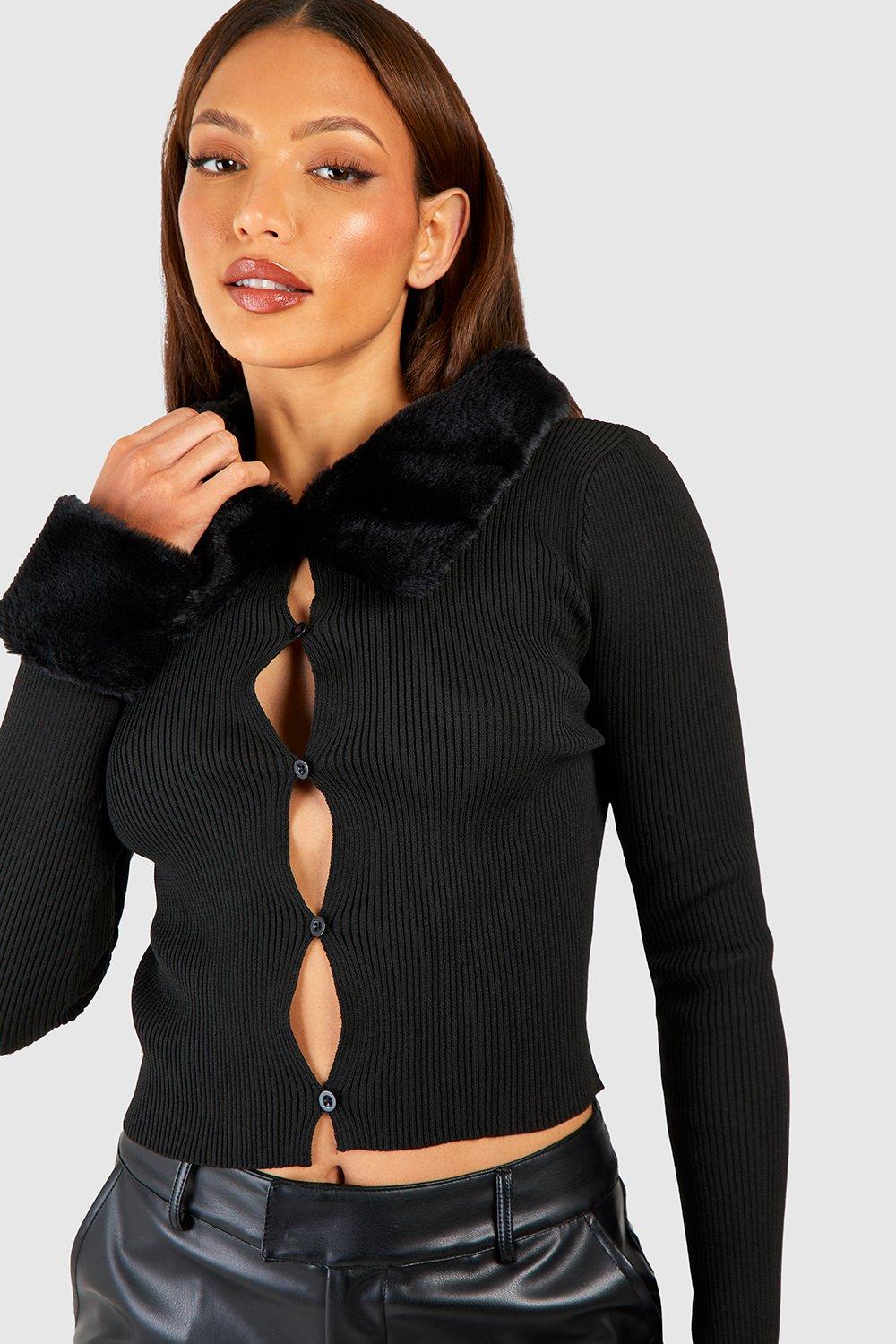 Faux fur cropped cardigan clearance, Crop Cardigan brand clearance