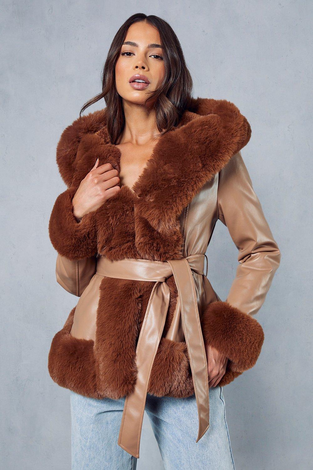 Jackets Coats Faux Fur Leather Look Belted Coat MissPap