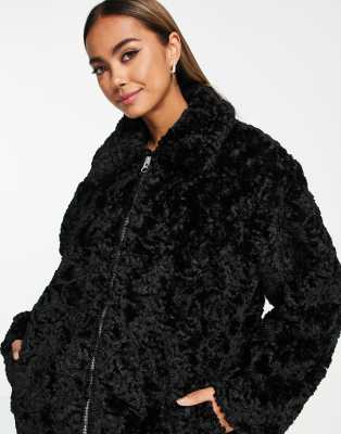 Faux fur jacket monki clearance, Monki curly faux fur boxy jacket in black clearance