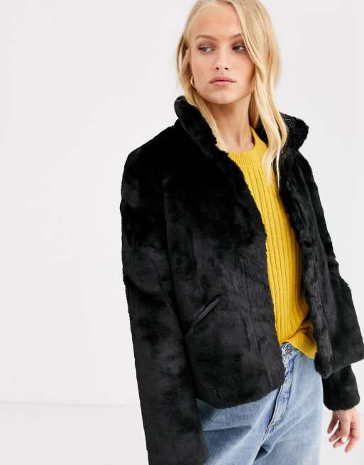 ONLY Cream Faux Fur High Neck Jacket New Look